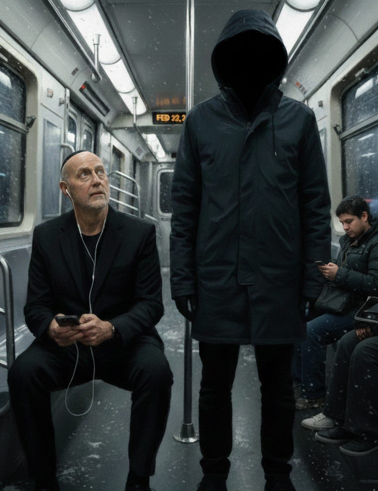 The train lurched and rumbled into the next station. He held nothing. Just — balanced. Never moved his body. Never moved his head. I couldn’t even make out if it was a he, because the hood of his winter jacket masked his face completely.